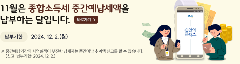 - 납부기한 : 12/2(월)까지! (납부기한을 넘기면, 납부지연 가산세가 부과됩니다. 1일당 = 2.2/10,000)