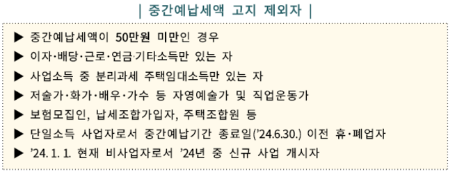 단, 중간예납 세액이 50만원 미만이거나 고지제외 사유 해당시 중간예납 제외됩니다.
